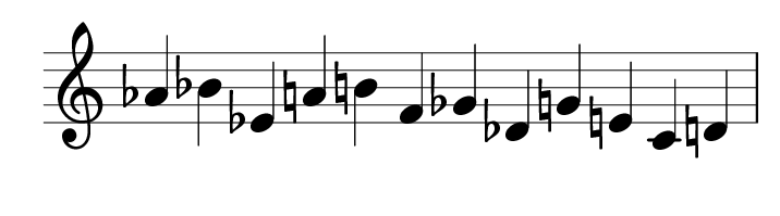 What is the relationship between the row Eb-Db-F-Ab-D-G-Gb-C-Bb-E-B-A and the row Ab-Bb-Eb-A-B-F-Gb-Db-G-E-C-D?