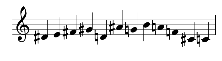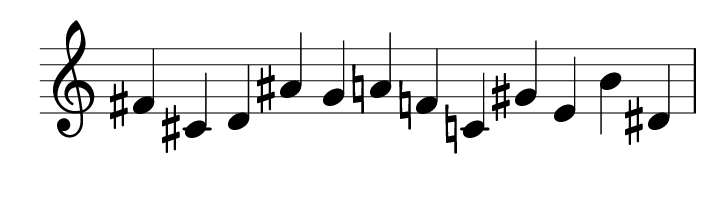 What is the relationship between the row F#-G-A-B-F-C#-A#-D-C-G#-E-D# and the row D#-E-F#-G#-D-A#-G-B-A-F-C#-C?