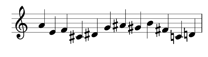 What is the relationship between the row F#-E-A#-D#-C-D-B-G-F-A-G#-C# and the row A-E-F-C#-D#-G-A#-G#-B-F#-C-D?